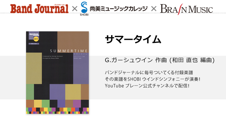 今年、没後80年を迎えるガーシュウィンの名曲《サマータイム》を、ソロ+フレキシブル編成にアレンジしていただきます。ジャズのスタンダード・ナンバーとして知られていますが、もとはオペラ《ポーギーとベス》の第1幕冒頭に歌われるブルース調の子守歌です。物語や作品の背景を調べてみるもの面白いと思いますよ!