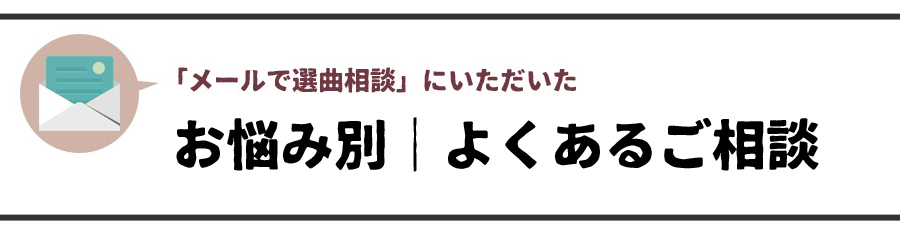 「メール選曲相談」では日々、様々なお問い合わせ・ご相談をいただいています。中でもよくご相談いただくお悩みを、編成・条件別にご紹介します。