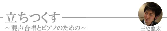 | 4. | 立ちつくす | 三宅 悠太 | 長田 弘 | SATB+pf | 5:30 | ![]() |