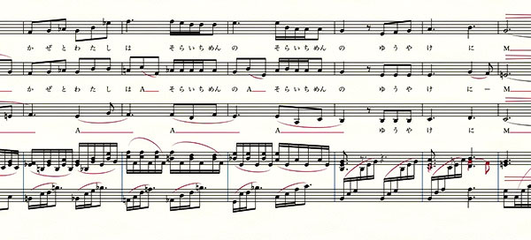 なんだか後ろ向きな話になってしまったので、もっと前向きな話もさせてください。もともと混声合唱の作品を女声合唱に安易に置き直してしまうと、原曲でのソプラノとテノールの見せ場をソプラノがともに歌うことになり、「ソプラノばかり美味しい」曲ができてしまいます。そうならないよう、今回の編曲ではメゾソプラノパートにも「美味しい」メロディを割り振るように努めました。結果として3パートの見せ場がそれなりに均等になったように思え、私としてはホッとしています。「見せ場をもらえないパートの恨みは尾を引く」と身にしみて感じる合唱団出身の作曲家の一人として、これ以上の安堵はありません。