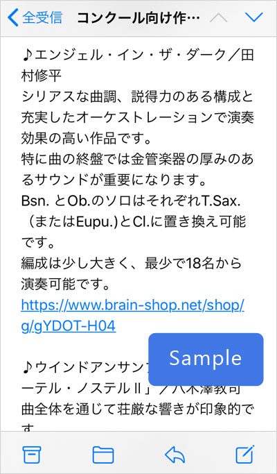 (メールフィルターに shopmaster@brain-music.com からのメールを受信できるよう設定をお願いいたします。) - 4営業日以内におすすめの楽曲をメールでご紹介いたします。
